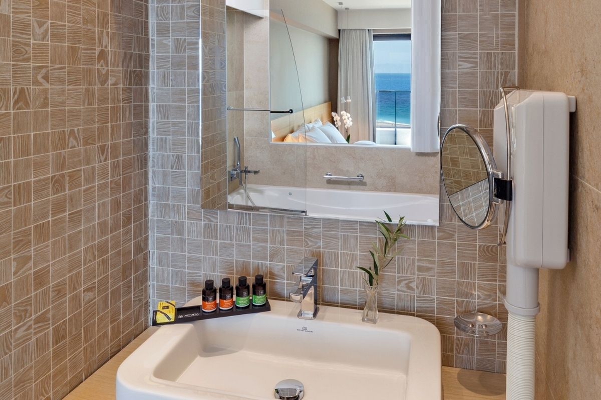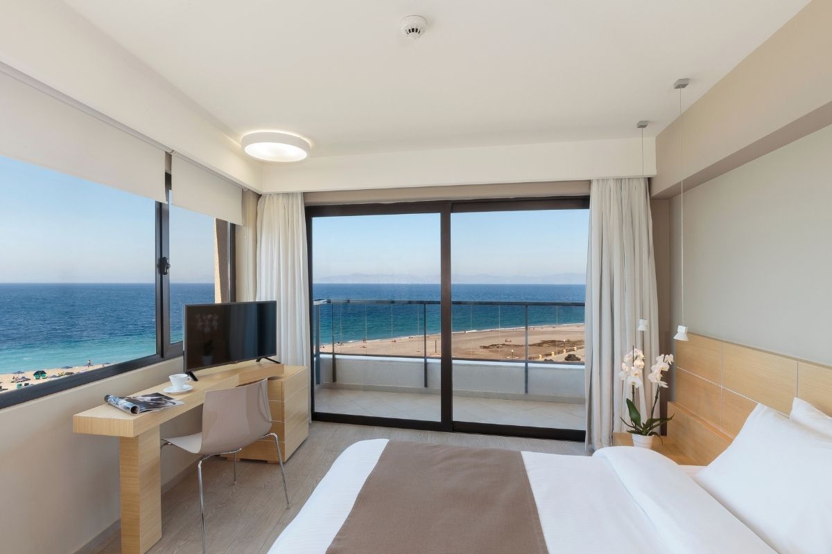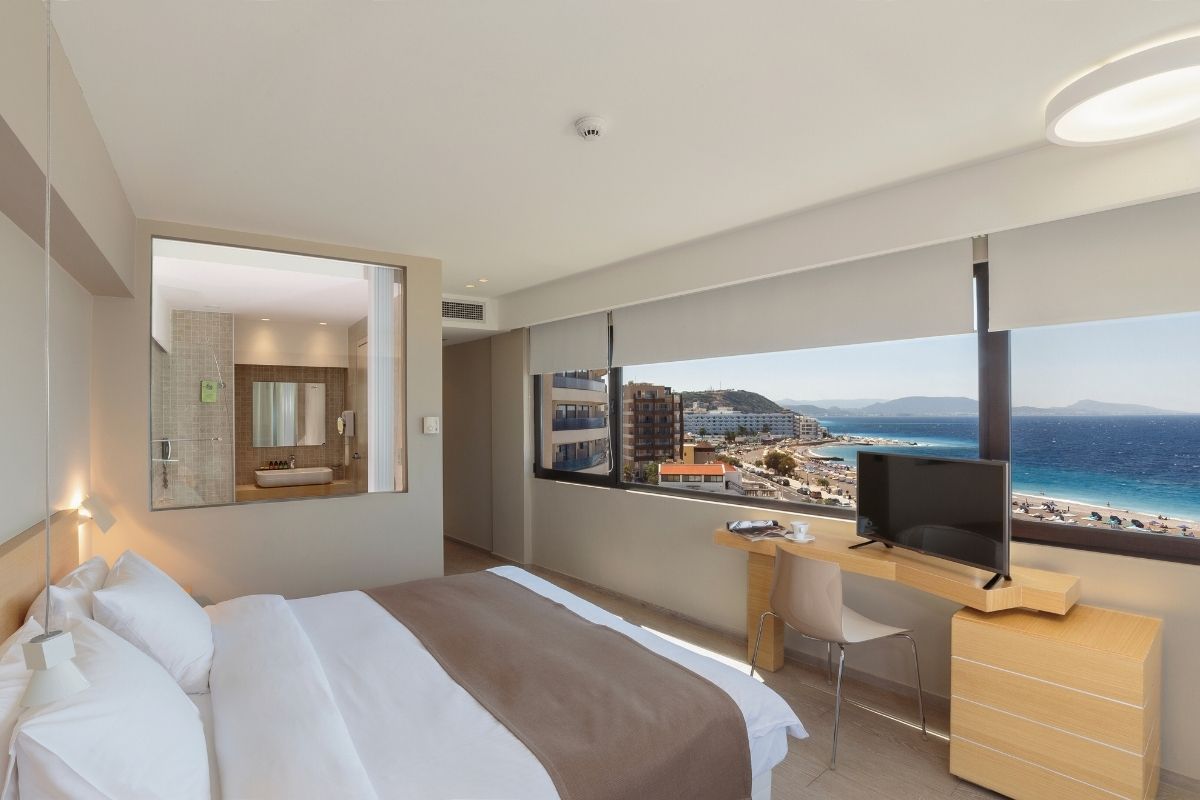The Panoramic Aegean Suites, located on the fifth and sixth floors of the resort, offer a refined combination of modern design and understated luxury. Each suite provides expansive views of the Aegean Sea and the island’s renowned sunsets, creating an atmosphere of tranquility and exclusivity.